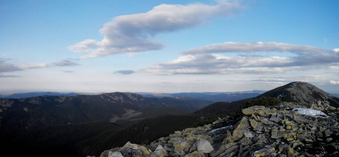 P.s.: Ну и добавлю одно фото для наглядности. Как раз вершина М.Горган, если быть совсем точным высота 1592,5 м. Вот так она выглядела 21.04.2014
