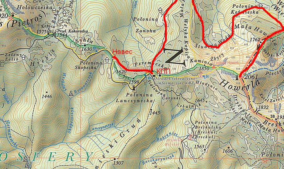 Можно и от Перемычки идти на Гропу и далее траверсом на Козьмеску и мимо еладбища, по границе на Говерлу.