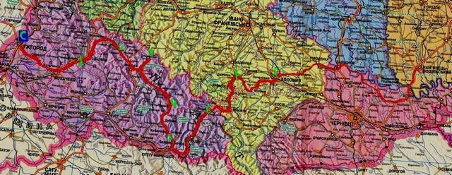 Маршрут: Ужгород-Мукачево-Свалява -Воловец-Межгорье-Синевир. Далее Хотелось попасть с Русской Мокрой в Ясиня. Далее Яремче-Коломия-Хортин-Каменец-Подольский.