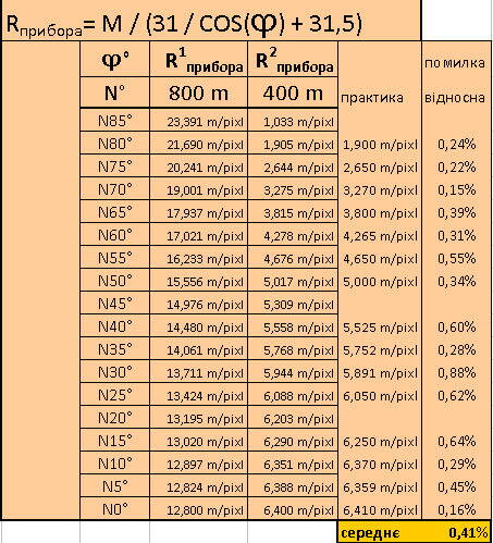 Скажу только, что очень сильная точность не нужна. Мы видели, к примеру, в тех же картах Карпат, на "400 м" разница между 5,1 и 5,2 м/пикс (это где-то 2%) практически незаметна (а между 5,1 и 5,3 - малозаметна). К тому же в некоторых случаях удобнее брать разрешение, не соответствующее измеренному по скриншотам, чтобы карта отобразилась на нужном масштабе (в Карпатах измеренное 5,137 не показывается на "800 м", а показывается 5,2; то же обнаружено и на широте Харькова). Поэтому можно смело использовать разрешение, вычисленное по формуле, имея в виду, что в некоторых случаях имеет смысл немного изменить его значение для того, чтобы карта отобразилась на нужном зуме (это понадобится только там, где два соседних масштаба отличаются друг от друга в два раза, т.е. пары "30 м" - "60 м" и "400 м" - "800 м").