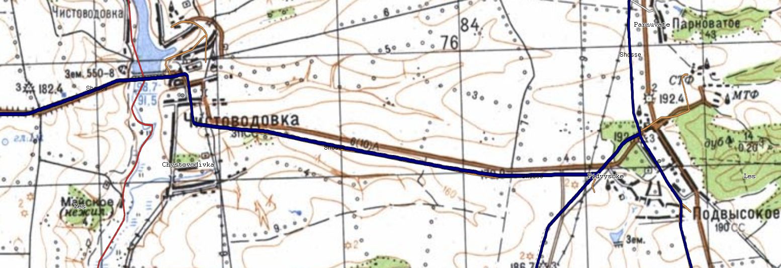 Вот неплохой пример, где видно, что дело не в привязке, а именно в глюкавой топооснове. В районе Подвысокого невязка 260 метров, которая к Чистоводовке сходит практически на нет..