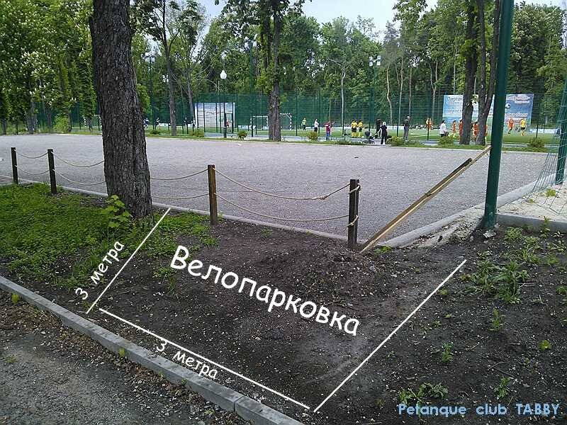 Харьковский петанк-клуб ищет спонсора для оборудования велопарковки на 6-10 мест. Заказать можно у этих ребят http://veloparkovka.com/. Место расположения - парк им. Горького.