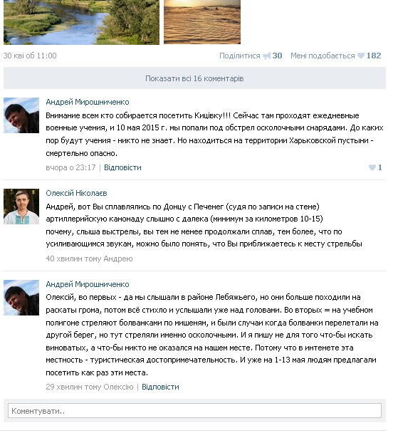 тут сарказм не уместен! (..письмо домой!) то что полигон давно это понятно! и там на сколько перечитал обзоров есть ограждения полигона! но "Сплавлялись лодкой с Печенег до Чугуева. В районе полигона (село Кицівка) осколком разбило насос, и слава богу, рядом была нога. Также с нами попали под обстрел две группы байдарочников. "