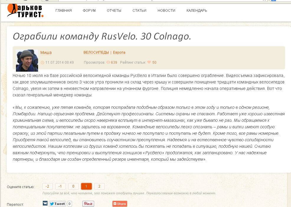 Я вже хлопцям говорив - вже тур почався , а ще ні-одну команду не "пограбували" , чи дійсно пограбували ? Ніби минулого року вже пропадали в росіян велосипеди .