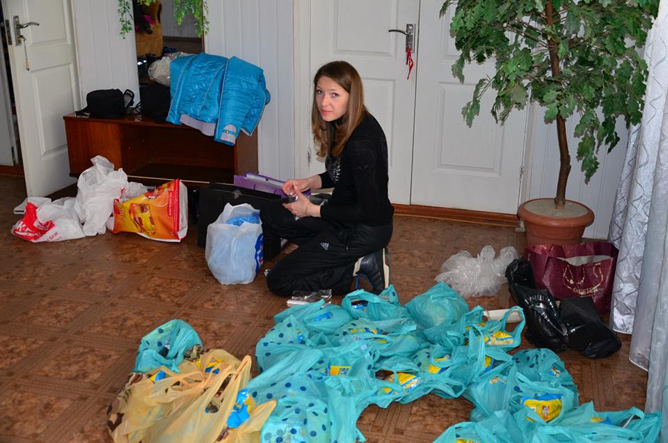 Исключительно по принципу целесообразности, а не жадности, отобрала НАШИМ деткам в детских домах, остальное эта неутомимая труженица отложила для беженцев.
