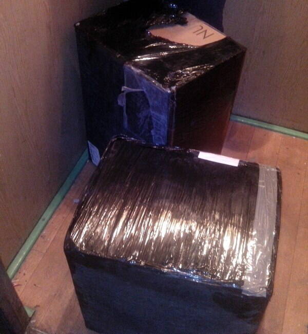 Сегодня получены 33! килограмма детских вещей из Австрии от пани Oksana Peterseil (коробочки на фото в лифте у Вики)