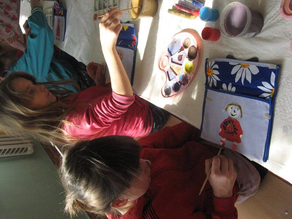 "Девчонки были в восторге от мастер-класса по росписи на тканях. Нам подкинули идею, что вместо футболок можно использовать что-то более функциональное. Расписывали сумки-косметички, пошитые нашей рукодельницей Ириной.