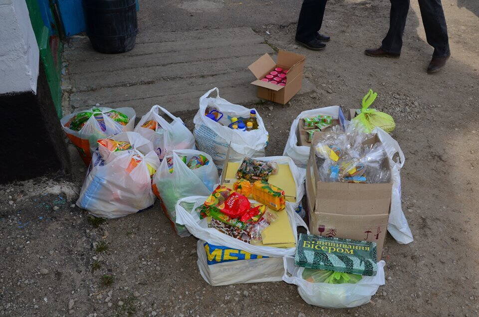 Привезли: сладости (пряники, печенье, палочки, конфеты), масло (сливочное и подсолнечное + сало), витамины, электролампочки, бисер, наборы для поделок разные, карандаши, гуашь, кисточки, плюс индивидуальные подарки для Владика, которыми пришлось поделиться, а также деревья, много и разных.