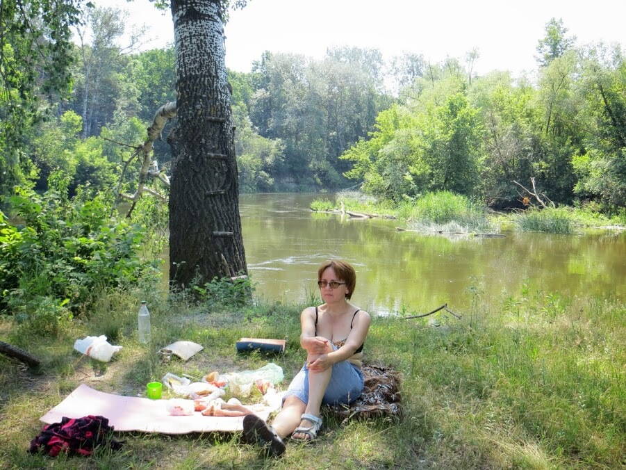 Комментарий к файлу: Потом разделились: те, кто не выспался, остались в лагере досыпать, а остальные- на родничок в Протопоповку. Посетили там пляж, объели землянику, преодолели новый брод, потерялись.