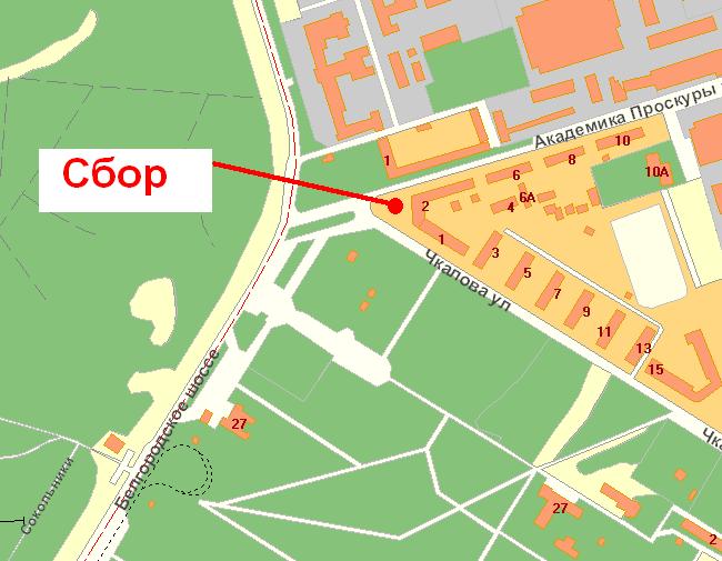 Все как обычно. Подъезжаете к воротам базы МВД в лесопарке, там есть асфальтовый подъем, на нем обычно старт.