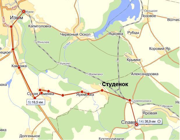 Капитоловка-Яхничев-Яремовка-Студенок-Святогорск