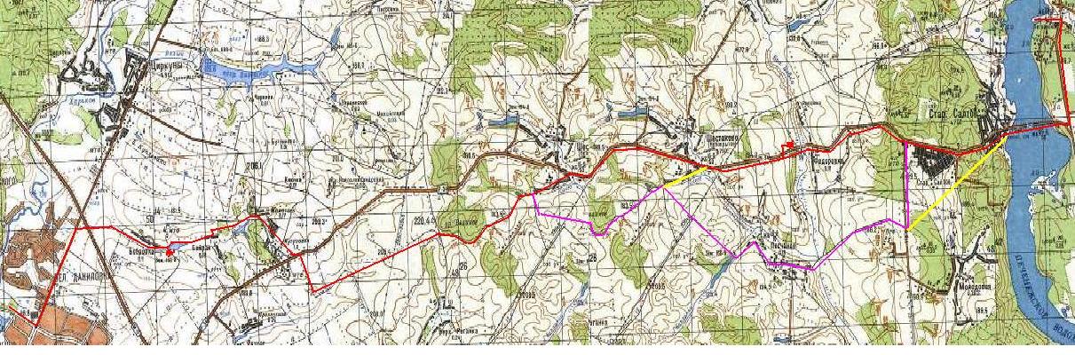 А что за фиолетовый маршрут? Если там собрались ехать, то так не проедете - там мост через речку липовый и сама карта со спутниковыми снимками не сильно совпадает. Может на карте он и есть, реально там болота со стороны песчаного (есть родник вкусный, но со стороны песчаного не скажу как найти). Мост был или сильно ближе к Федоровке или гораздо ниже возле Большой Бабки. У меня в том районе дача - много исходил но давно, по памяти вот карта с вероятными местами переезда http://maps.yandex.ru/?um=M37wySDPIYf_q ... jVH0&l=sat