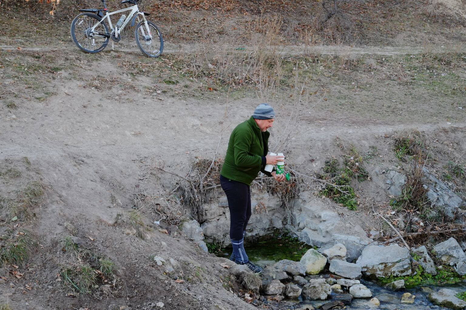 Води там нема ніде. У Мирній Долині є колодязі, та не проучуся за якість води в них, до того ж доведеться робити петлю, аби туди заїхати. Від самої скелі (якщо ризикнемо сунутися до броду ;)) в 3 км знамените джерело коло Протопопівки.
