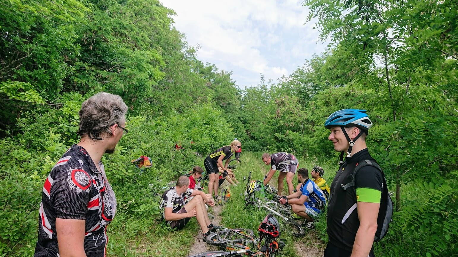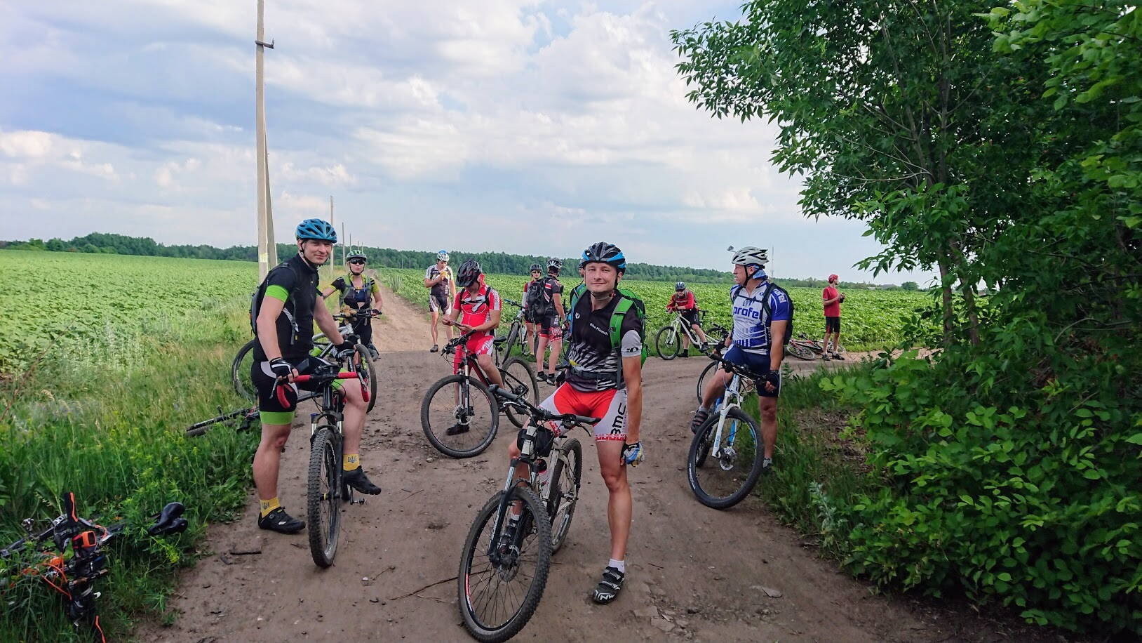 Уххх, не денек, - а ацкий сотона, черти со своими котлами отдыхают в аду :evil: =_)). Данный участок был полностью пройден, проехали везде без особых проблем. По полям темп был отличным, первые км 40 солнце не светило, дул несильный ветерок, - красота :yes:. До Пересечной (60 км пути) средняя была 19+, но потом кто-то включил солнце, начали закипать, если бы не водные процедуры у родников, то сгинули бы там всей развед-группой, особенно накрыло при въезде в лес у Высокого, после дач, ехали как по сковородке. Потом Святой Один сжалился над нами и закрыл палящее солнце шторой из туч, за что ему отдельное спасибо :-D. Да, торчки, качественные и в изобилии :twisted:. На лесных участках, там получалось ехать медленнее, в начале Ореховой рощи немного подзаросло, пару объезжаемых завалов. Хватало мест и с не очень хорошими грунтами, последние км после жд моста + тропы по злачным местам харьковского зажопья, Новожаново в особенности :facepalm:. Ну и как итог этой прикатки (90-200 км), то эта часть ни чем не легче первой как по набору высоты так и по рельефу + летняя жара делает ее очень тяжелой и сложной. Как только солнце включалось, все "тухли", солнце исчезало, - все едут в приемлемом темпе. Короче говоря, - сплошное выживание, одни мысли, чтобы только не сдохнуть где нибудь на маршруте :ROFL:.
