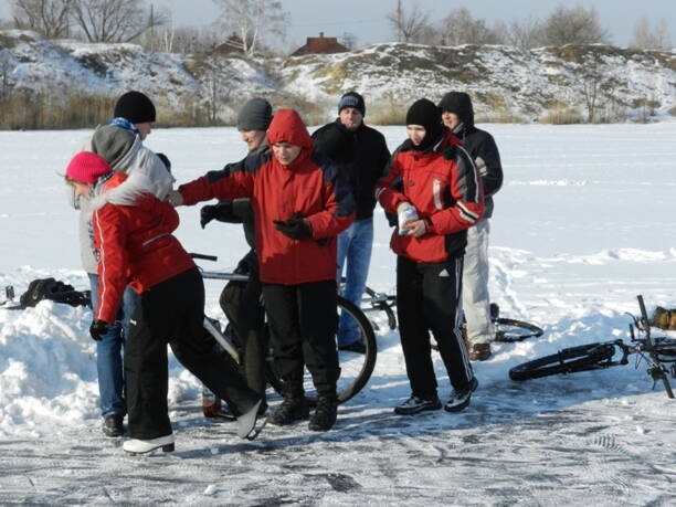 Классно покатались!Кто на веле, кто на коньках, а некоторые и на санках приходили. Спасибо мальчишкам за обалденный лед!