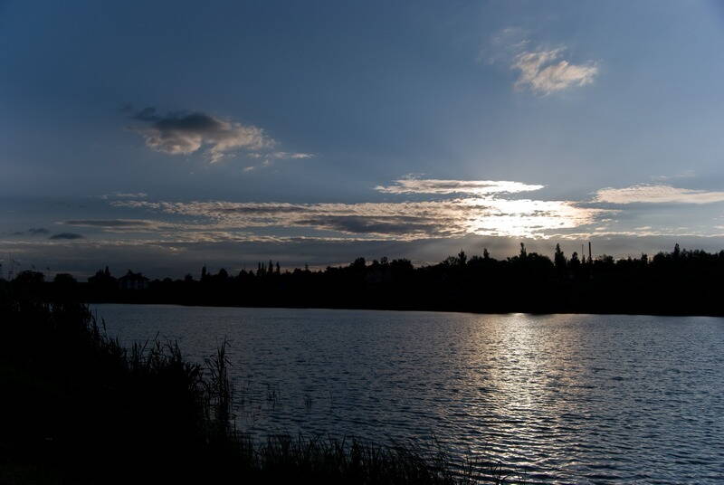 Там всю прибрежную зону частными домами застроили! А чтобы объехать озеро, надо ехать за домами, там есть дорога! С другой стороны озера дамба и неплохой песчаный пляжик!