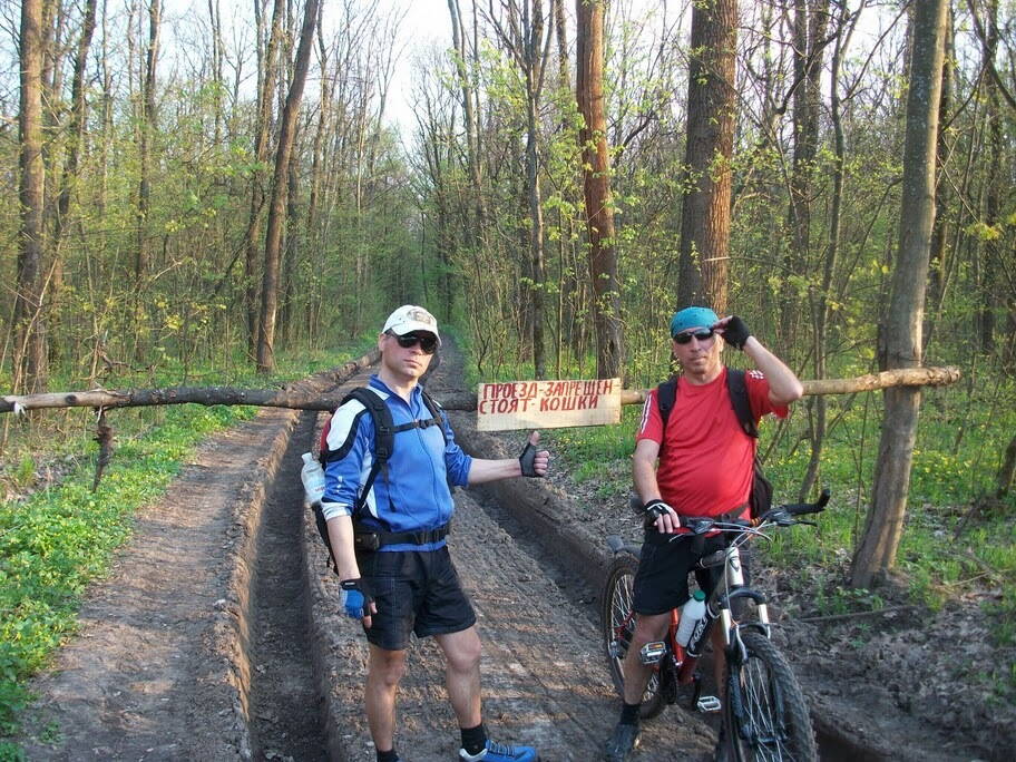 Что сказать? Покатушка конкретно зимняя, -5 - это была практически постоянная температура. Снега, к удивлению, оказалось много, местами ну не по-колено, но много. снег сухой, едется по нему, как по влажному песку, но, хуже всего то, что под этим снегом ничего не видно, а это сказывается на безопасности езды. Если бы я надел резину с зимними шипами - я бы не прогадал. Раскатанные дороги очень скользкие и не безопасные. Обратите, пожалуйста, внимание, на ноу-хау лесников сосновых лесов - на всегда проезжаемых нами дорогах стояли какие-то жердочки с надписью кошки. Мы с Денисом даже постебались - не амурских ли тигров завезли. но, уже через 500 метров мы услышали крики и выстрелы. Испугалсь - подумали, что пьяные охотники нашли мишени в нашем лице. Еще через 200 метров мне стало ехать очень не комфортно. Заднее колесо оказалось спущенным. Тут мы и поняли, что это за кошки (хорошо еще, что у меня в переднем был гель). Ну и , когда мы стали менять камеру - подъехали лесники, которые и рассыпали кошки для воров елок. Поняв, что мы - почтенные туристы, они долго извинялись и даже предлагали свою помощь. В результате наш вояж слегка затянулся. Вывод - сезон зимних покатух начался, со всеми вытекающими мероприятиями и планами.