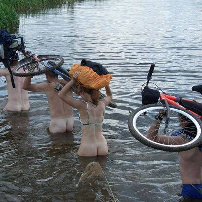 Раговаривают два велосипедиста после долгой поездки в дождливую погоду: