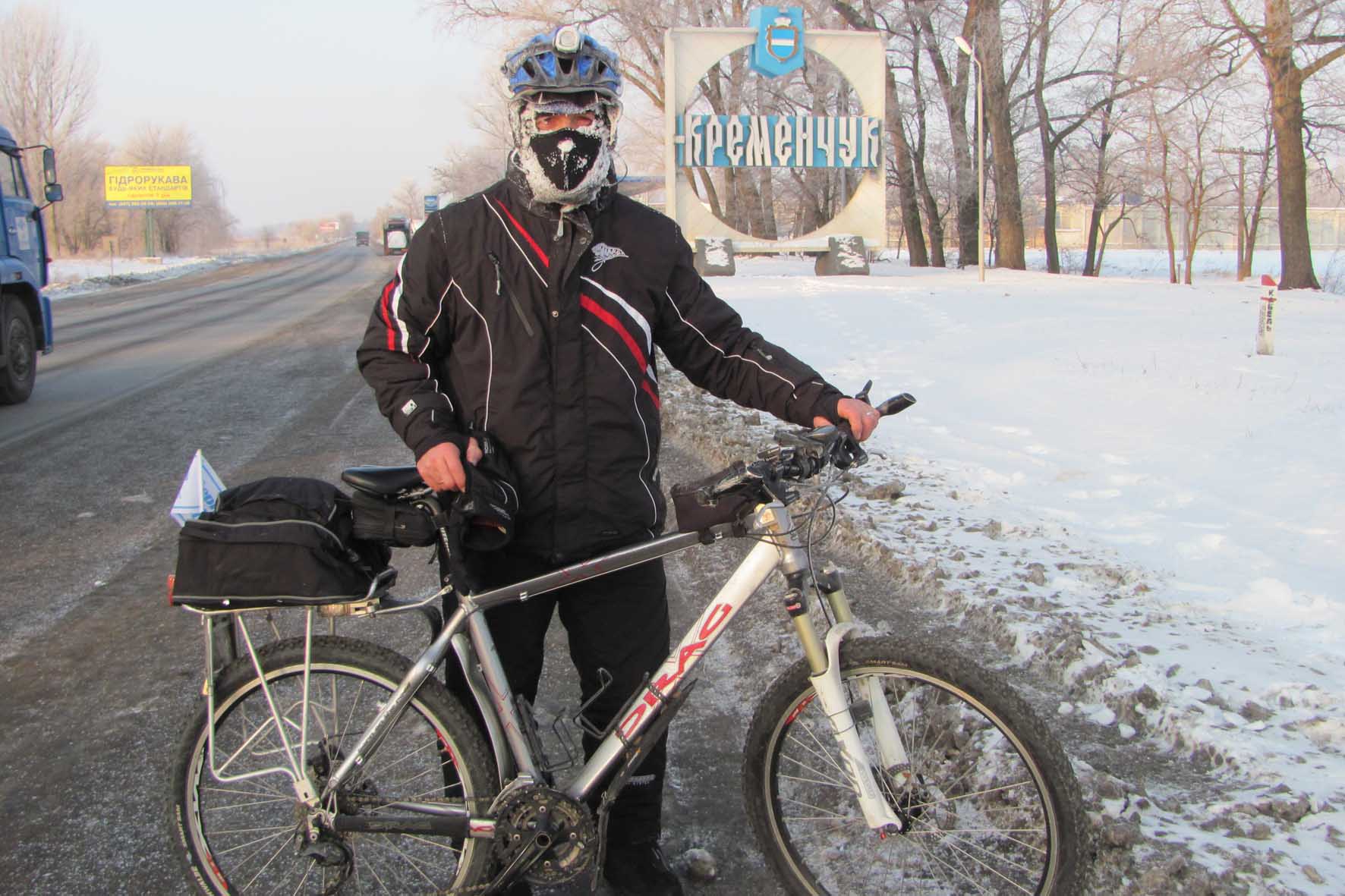 "А по сути данного события, еще раз могу повторить не как турист и любитель езды не велосипеде, а как автомобилист, часто проезжающий поздно вечером по трассе Харьков - Киев, что это была глупая авантюра. И пострадать могли не только Вы , но и водитель, который совершенно не ожидает увидеть ночью зимой велосипедиста на обледенелой дороге."