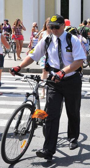 P.S. Господа велоджентльмены! Заранее прошу обратить внимание на целесообразность прибытия к месту старта в аксессуарах, соответствующих дресс-коду секьюрити: черный низ, белый верх (+ черная куртка, если вдруг будет прохладно), черный галстук, черный головной убор. Сами обеспечиваем свою безопасность. Охраняем сами себя. Хватит, что мы и так все время по городу шастаем как сявки в чем попало (за редким исключением). Хоть на белую ночь принимаем облик велоджентльменов. Тем более, что сегодня среди секьюрити у нас дамы. И, тем более, именинница. Уважаем их, но, прежде всего - самих себя! :smile: