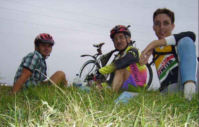 Этап 1 Харьков - Терновая Дистанция: около 45 км Уровень сложности: средний. Утро выдалось в меру пасмурным, но надежда на солнце ещё была. Ровно в 07:30 позвонил Андрей (наш новый попутчик), мы встретились на кругу троллейбуса и отправились к подъезду Александра Даниловича. Долго ждать не пришлось, снимок перед стартом и вперёд. Дорога от Харькова к Липцам была лёгкой и прекрасно подходила для "разогрева". Ехали в удовольствие 22-30 км/ч, ветра не наблюдалось. Посёлки сменяли друг друга и вскоре справа от дороги показался холм, над которым поднималось солнце. Где-то там за его полями и рощами расстилались воды Печенежского водохранилища. В Липцах мы взяли курс на село Весёлое, повернув направо, после чего перед нами открылся тягун через вершину холма. Ветерок начал давать о себе знать. Тем не менее, солнце всё ещё скрывалось за тучами. На вершине холма взор радовали зелёные долины и поля зерновых культур. Дорога пошла под уклон и справа блеснула водная гладь Муромского вдхр. В посёлок Весёлое влетели на скорости 58-65 км/ч (у кого как ), после чего некоторое время неспешно катили по нему 22-24 км/ч. За посёлком, после подъёма с поворотом влево, открылась дорога на Терновую. Берёзовая рощица и долина перед въездом в населённый пункт веселили душу. В терновой была сделана остановка с целью закупки провизии и пополнения водных ресурсов.