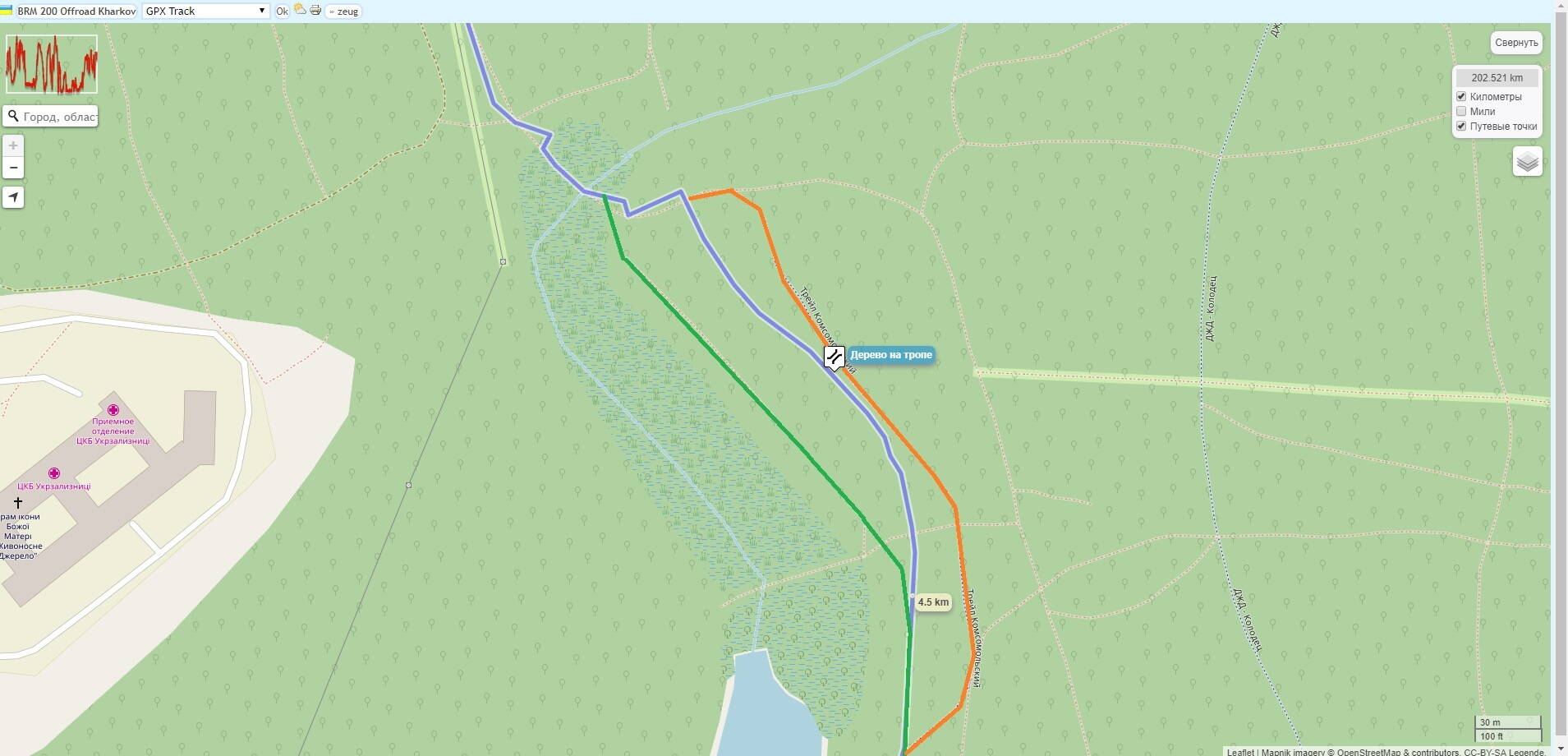 И нужно слегка поправить заезд в сады от Малой Рогани. Как нарисовано, дороги нет! Нужно, как на этом треке: https://www.gpsies.com/map.do?fileId=bnazlqytcpsvkbpa Именно заезд, дальше по садам до финиша всё правильно!