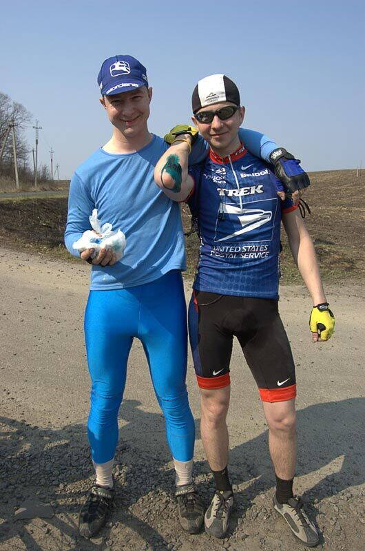 Пробег 115км. Средняя около 18. Вообщем все нормально прошло. От Харькова до Печенег сопровождал сильный попутный ветер. Весна порадовала разноцветными цветочками. От печенег до Чугуева разделились на две группы, одна по асфальту, другая :twisted: по песку против сильного ветра. Та что по асфальту немного раньше нас пришла. Многие участники нашей группы оставили силы в песках. И еще около 20минут потеряли времени, оказавшись в болотном тупике. Пришлось проехаться по бездорожью, где была спаленая трава и бугры с ямами. Некоторым такое пришлось по вкусу). на 5 часовую элку пришлось спешить и наша группа распалась по парам. Некоторые до Чугуева доехали позже к другой элке, которая была на 6.15.