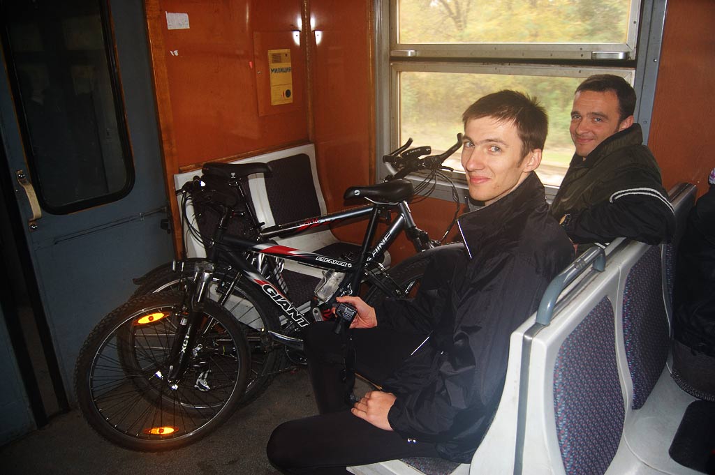 Приключения начались со старта у Экватора. Нас заехал проводить Zin. Он уехал своим ходом, а мы, четверо искателей приключений, как и было договорено, в 8.25 стартанули. До Рассвета доехали без приключений. Собак замечено не было :). На Рассвете к нам присоединились Дрюшин и Тимчучок. Через пять минут подошла элка. Как я и предполагал из электрички вывалила толпа дачников. Но наши попытки найти хотя бы один тамбур, в который можно было бы вкатить хотя бы один вел, все равно не увенчались успехами. Пришлось ехать на Зеленый кололодезь. Туда через 30 мин подходила электричка с Левады. Эта электричка уже была практически пустая. В ней мы обнаружили еще двоих желающих съездить в гости к заброшенной яхте. В Чугуеве поразили представители власти, сделавшие замечание за езду на велосипеде по платформе :( и муравейник из 33 чудаков :) на велосипедах на привокзальной площади. От одного опять получил замечание по поводу моего зеленого коня (обидно блин :() И начался замечательный трип живописным берегом Северского донца в сторону бугристых песков.