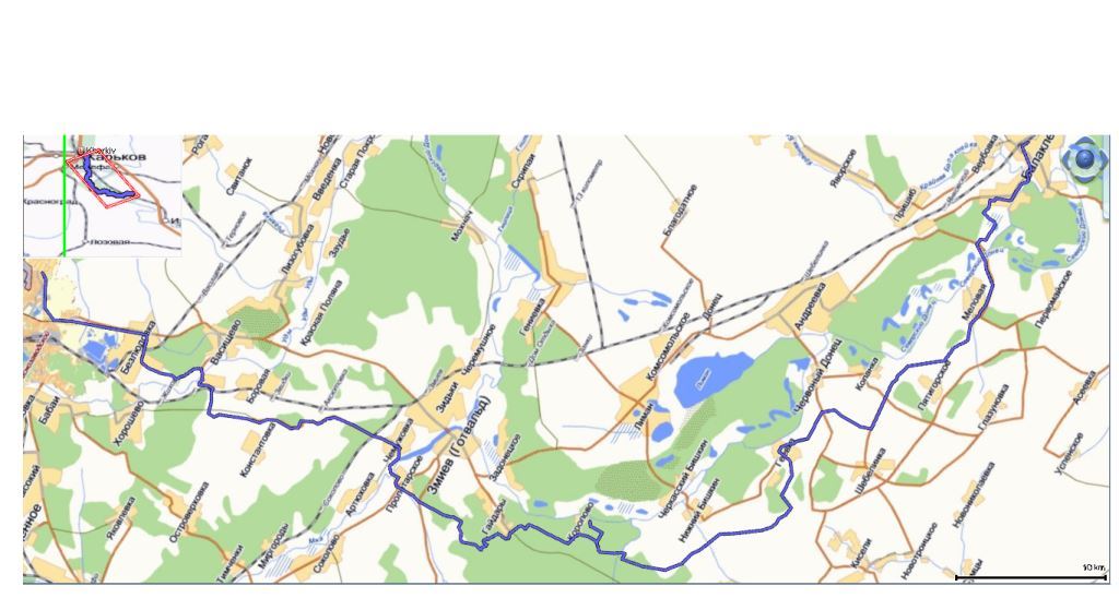 Маршрут: Маршрут: Харьков - Безлюдовка - Гусиная Поляна - Чемужовка - Пролетарское - Станция по изучению ионосферы - Иськов Яр - мимо Гайдар - по дремучему лесу на Казачью гору - Сухая Гомольша( посмотрим городище) - Нижний Бишкин - Геевка - Червоный Донец - Копанка - Червоная Горка - Меловой Карьер - Асеевка - Шевелевка - Гусаровка - Волобуевка - Меловой утес - Ветровка - Залиман - ЖД станция Савинцы