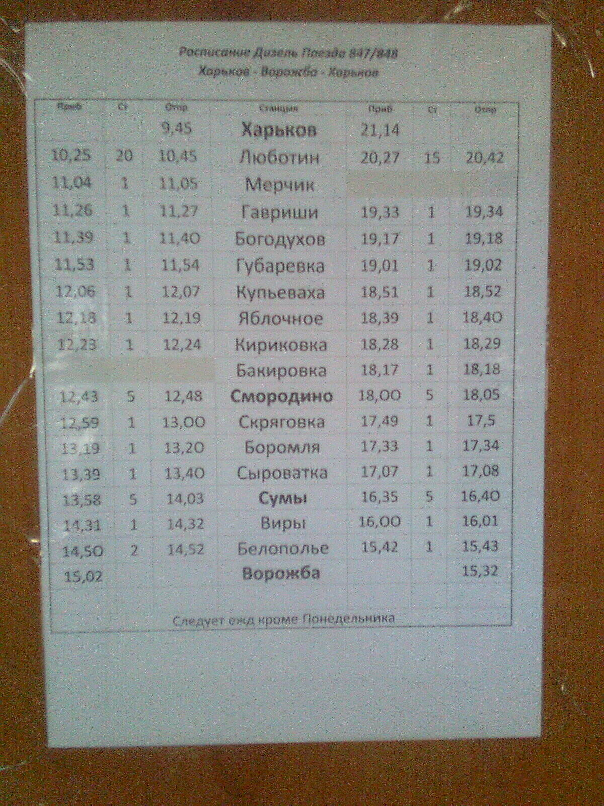 Отправление из Губаревки в 19.00. В Харькове - в 21.14