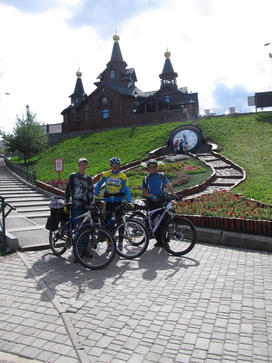 Переправляем велосипеды, сами переправляемся на тот берег...