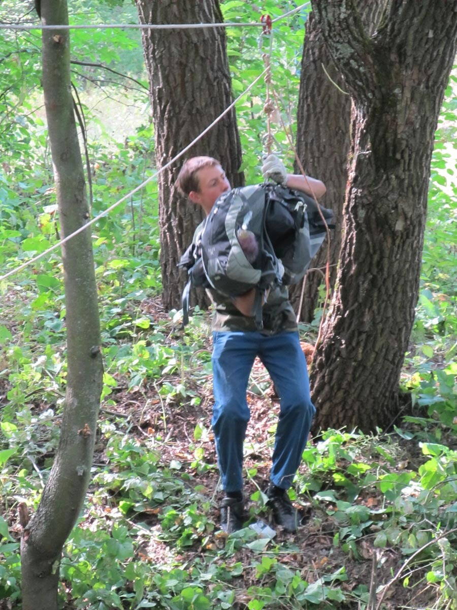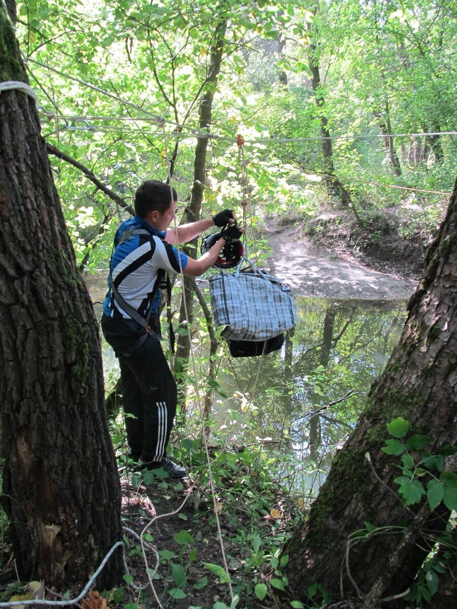 Наведение навесной переправы через р. Лопань