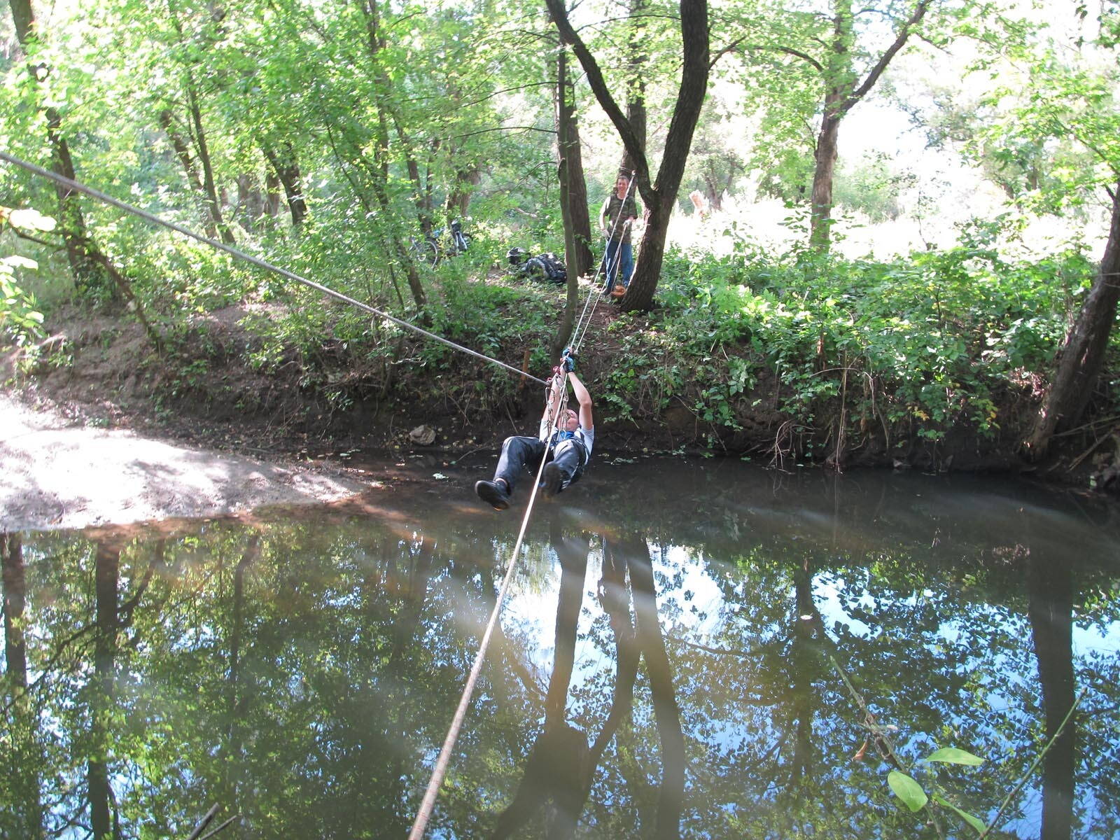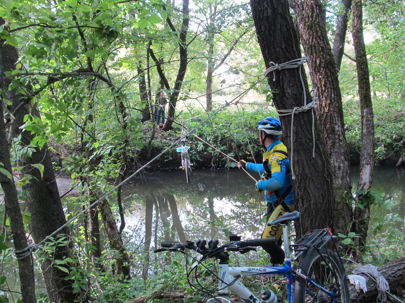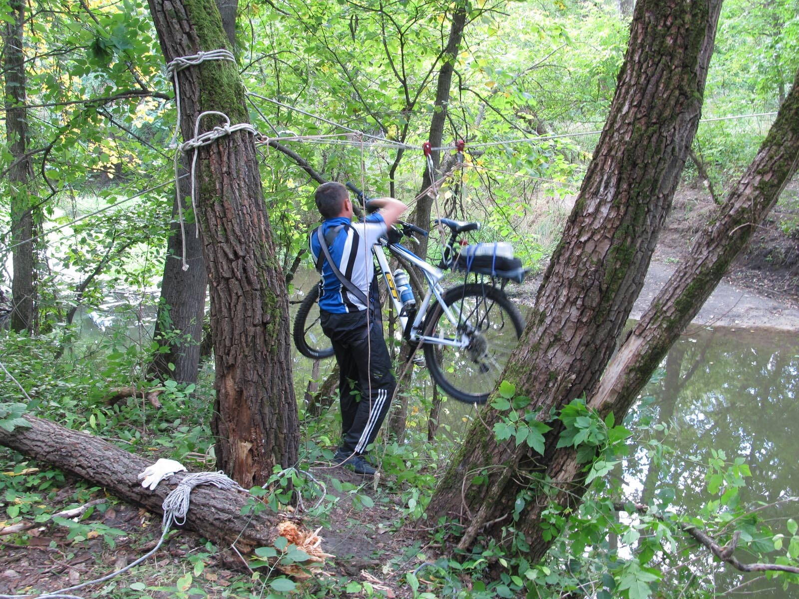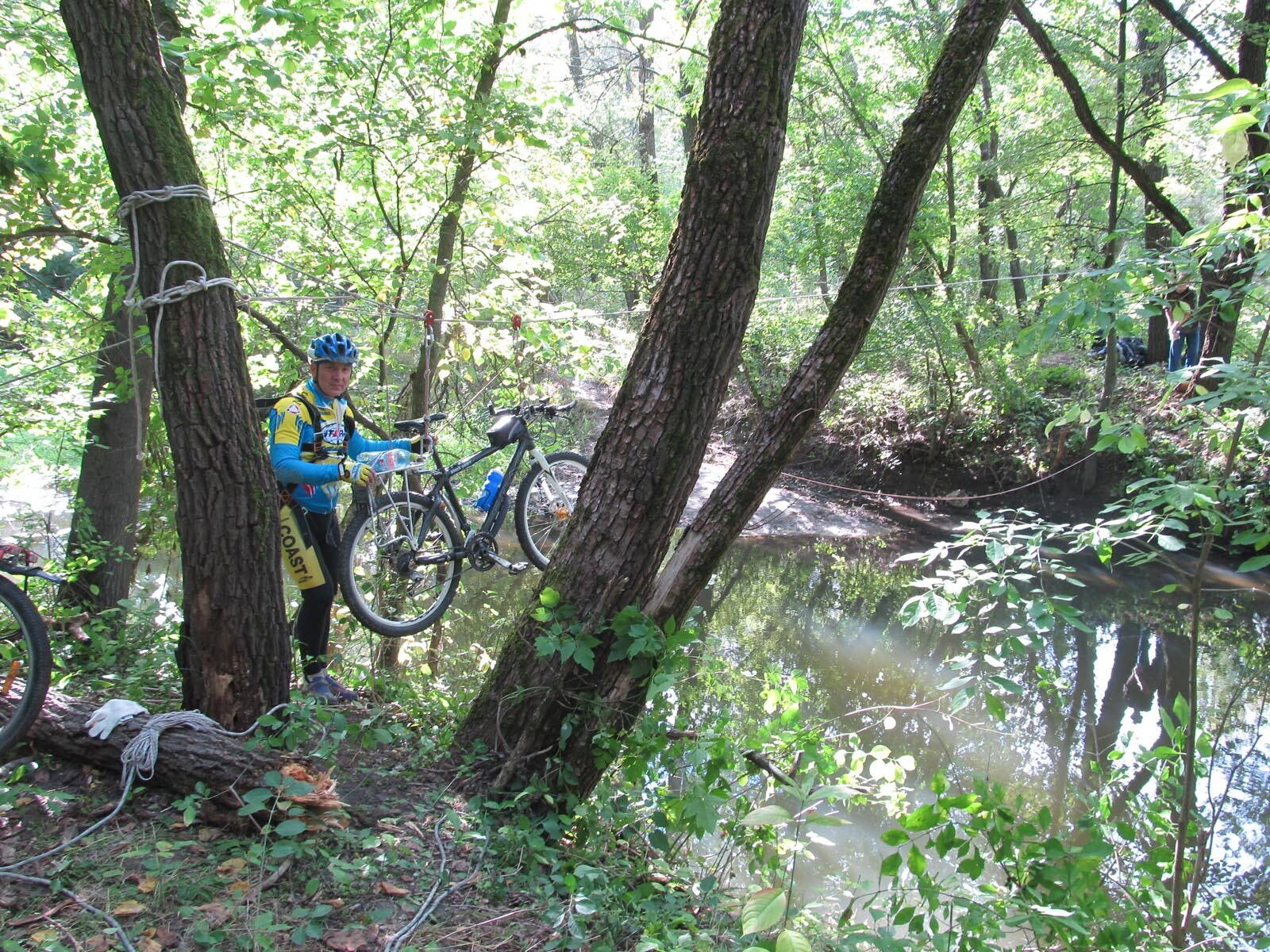 И так состоялся спортивно познавательный велопоход выходного дня (ПВД) с наведением навесной переправы и преодоление реки Лопань в брод на велосипедах.