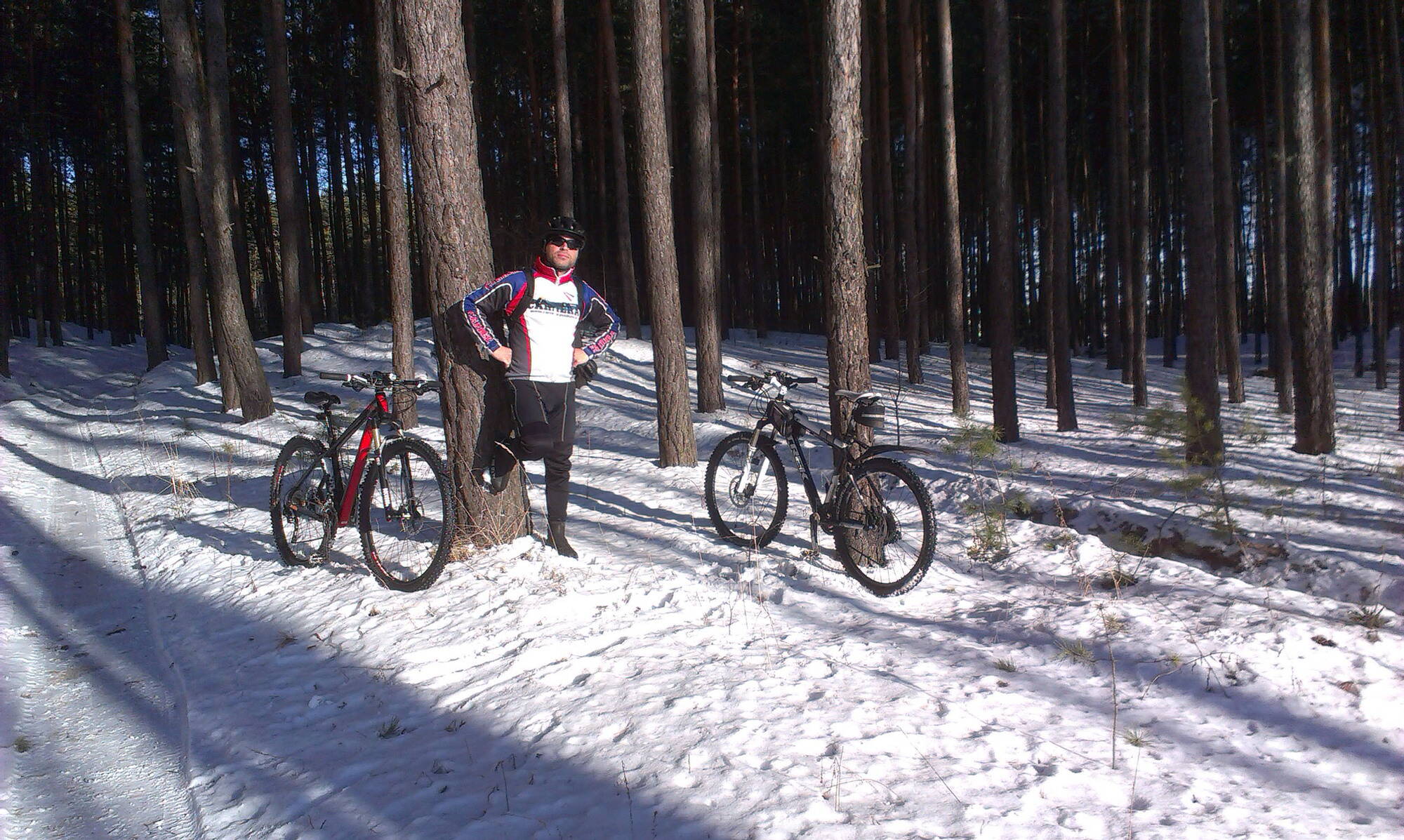 Сегодня с Пенсом произвели небольшую рекогносцировку, накатили по полтишку! :) Погода сегодня была - просто класс! Но, надо сказать, что на открытых местах, в полях, на асфальте, Солнце уже играет против нас! А в лесах по-прежнему зимняя сказка! :good: :smile: