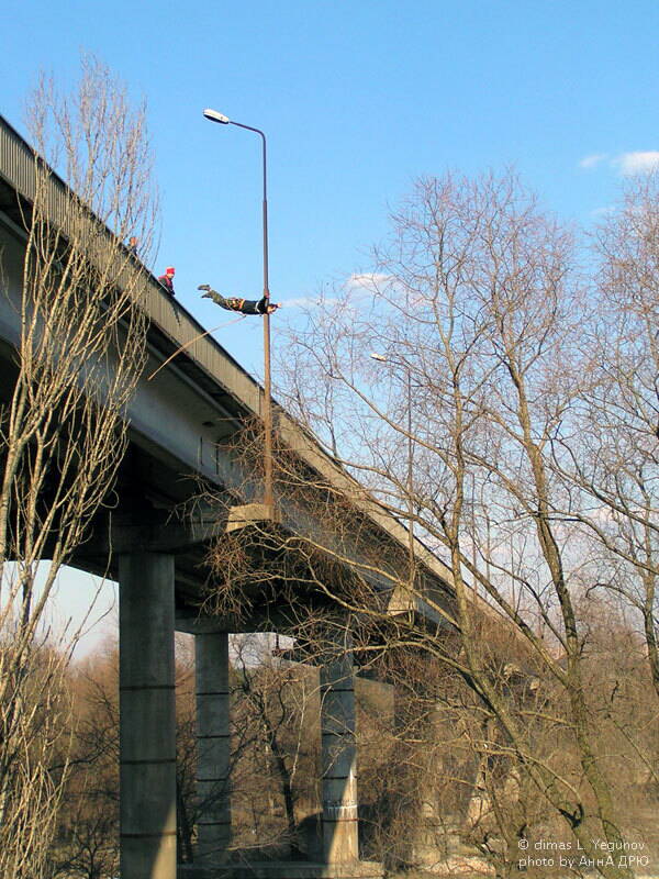 сам прыгал с моста за клочковской. 22 или 24 метра высота пролета. тоже Очаковский организовывал. спасибо ему :)