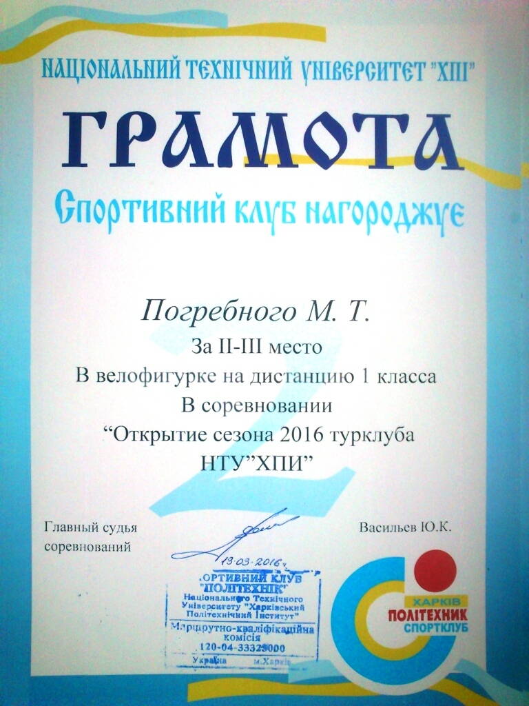 Традиционно турклуб НТУ "ХПИ" в марте "Открывает велосезон" проведением соревнований по "Велофигурке" (фигурное вождение велосипеда).