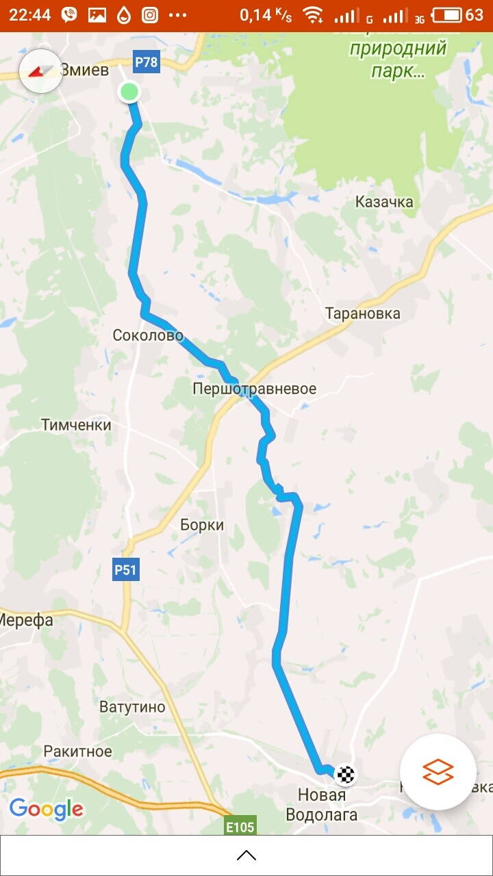 Маршрут: Змиёв - Соколово - Борки - Новая Водолага