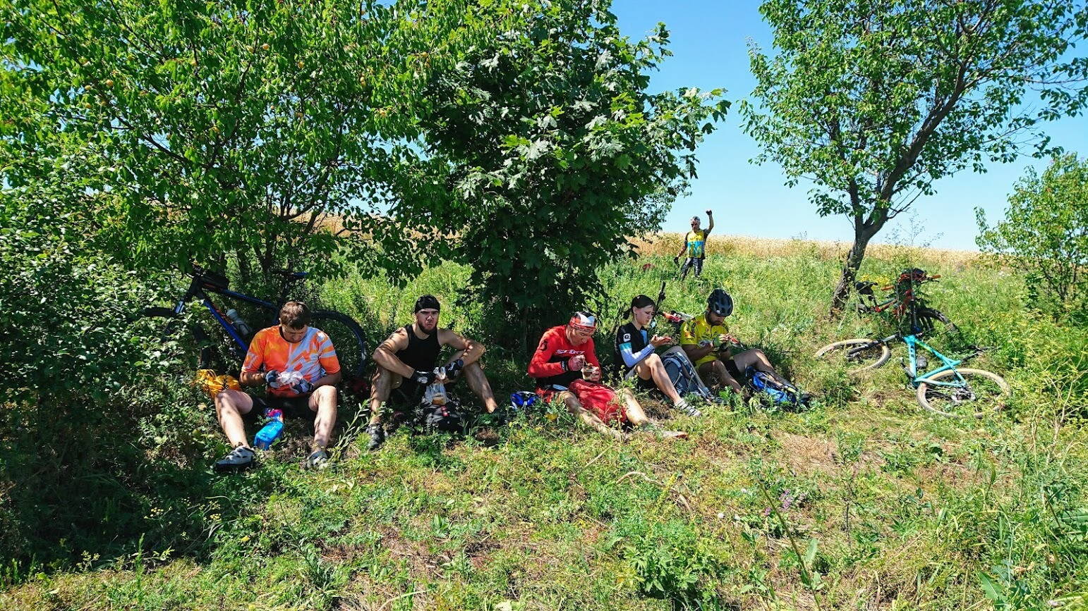 Это был чудесный, яркий и насыщенный день :yes:! Прокатились отличным маршрутом с ровным и не ровным рельефом, песками и твердыми грунтами, хвойными и не хвойными лесами, через поля и луга, - и все это на фоне красивых природных пейзажей нашей неньки :roll:. Аграрии все чаще стали "радовать" нас перепаханными полевыми дорогами, за М.Проходами посусанили по лесу, чтобы объехать поле с зрелой пшеницей, но "полевой челендж" выполнили уже на кукурузном поле во второй половине маршрута :-P. Заслуженный привал был, как и планировали, у Травянского водохранилища, тень для которого тоже пришлось поискать :sun: :matras:. Из рельефного, запомнились два взрослых подъема с градиентами 19% и 18% :ohuet:. Всем спасибо за бодрую и позитивную компанию, рад был всех повидать :friends: ! До скорых встреч!