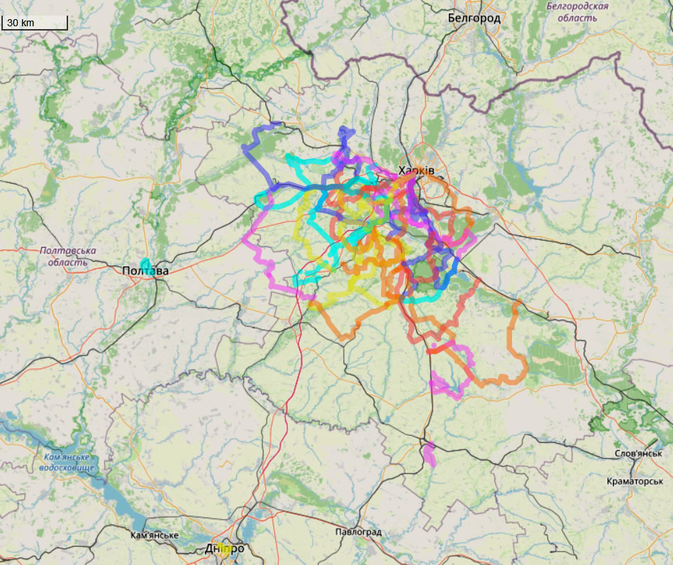 Маршрут: зал. вокзал ХАРКІВ-ПАСАЖИРСЬКИЙ - поїзд на ІЗЮМ (7:00, 2-й вагон по ходу поїзда) - платформа ЛЕВКІВКА (8:06, end платформи по ходу поїзда - піший 23 км, запас часу близько 8 годин): Левківка - ліс - Чемужівка - ліс - заплава річки Мжа - Височинівка - ліс - Зміїв - Мікрорайон - Центр - заплава річки Сіверський Донець - Замостя - ліс - Левківка - зупинка платформа ЛЕВКІВКА - поїзд на ХАРКІВ-пасажирський (14:21, 16:05, 17:14) - зал. вокзал ХАРКІВ-пасажирський (15:40, 17:21, 18:32)