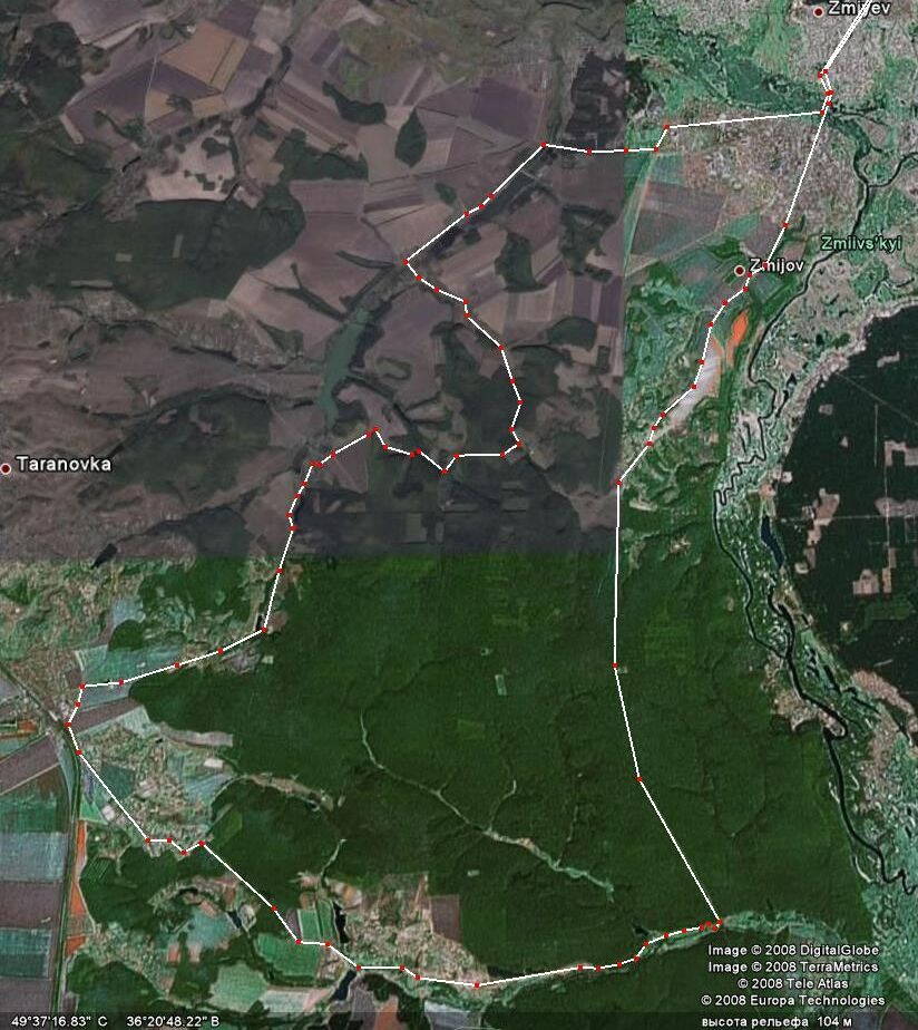 Маршрут: Харьков - Змиев (на ёлке) - Гайдары - Вел.Гомольша - Пасеки - Казачка - Иськов Яр - Жадановка - Змиев