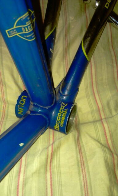 Да, цвет оригинальный - еще и поэтому не хочу полный перекрас делать если будет альтернатива. Да и хром под краской повредить не хочется - снимать старую только химией придется с половины рамы. Рулевая, которая там установлена, вроде Campagnolo 1039 Record Strada, на Велобэйс описана как English/ISO/Italian (25.4mm x 24TPI) в плане резьбы (вариант с французской точно отпадает, судя по маркировке на гайках). Ее можно назвать и итальянской и английской, поскольку одинаковая :smile: