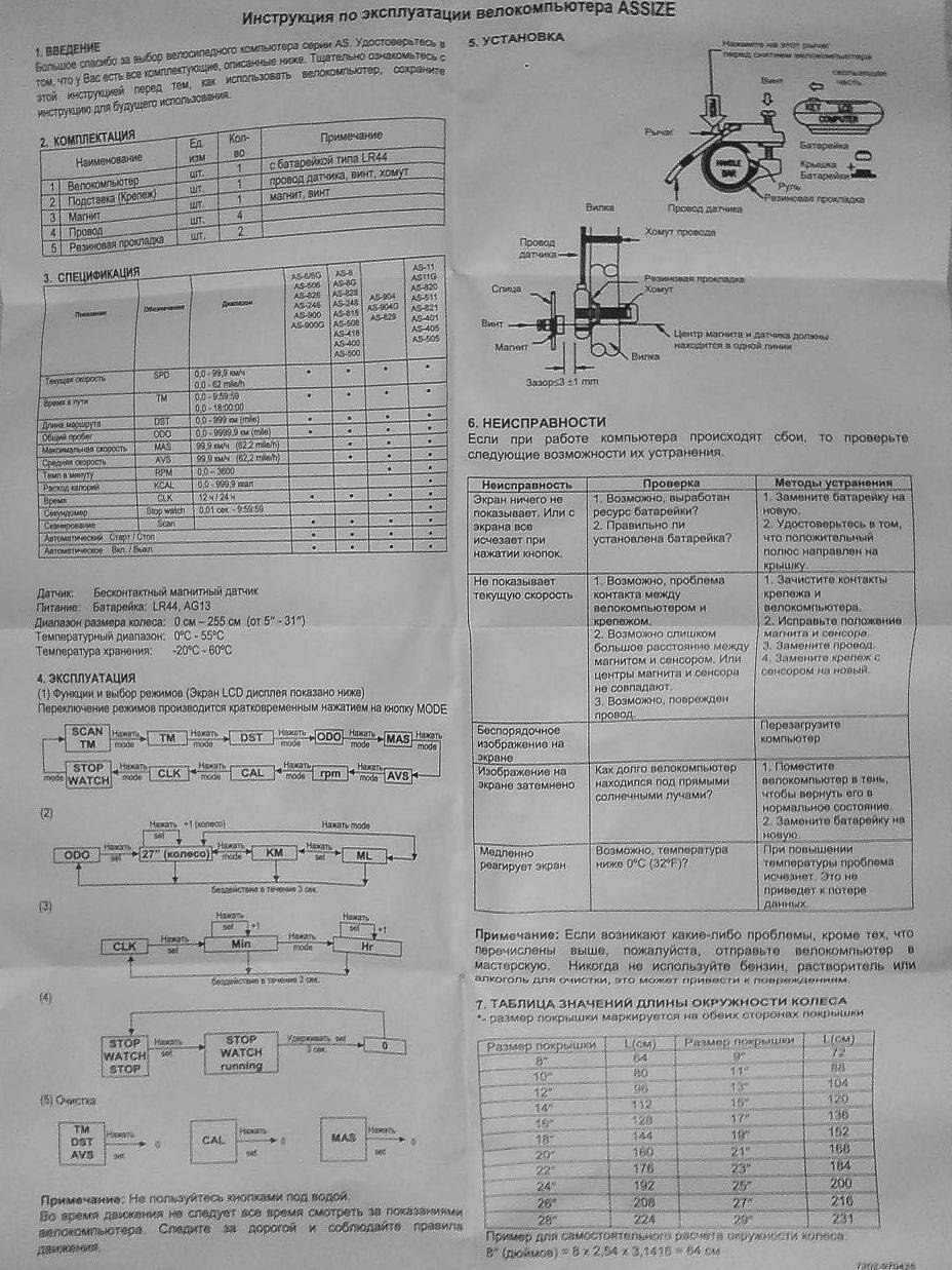 Велокомпьютер ASSIZE инструкция.