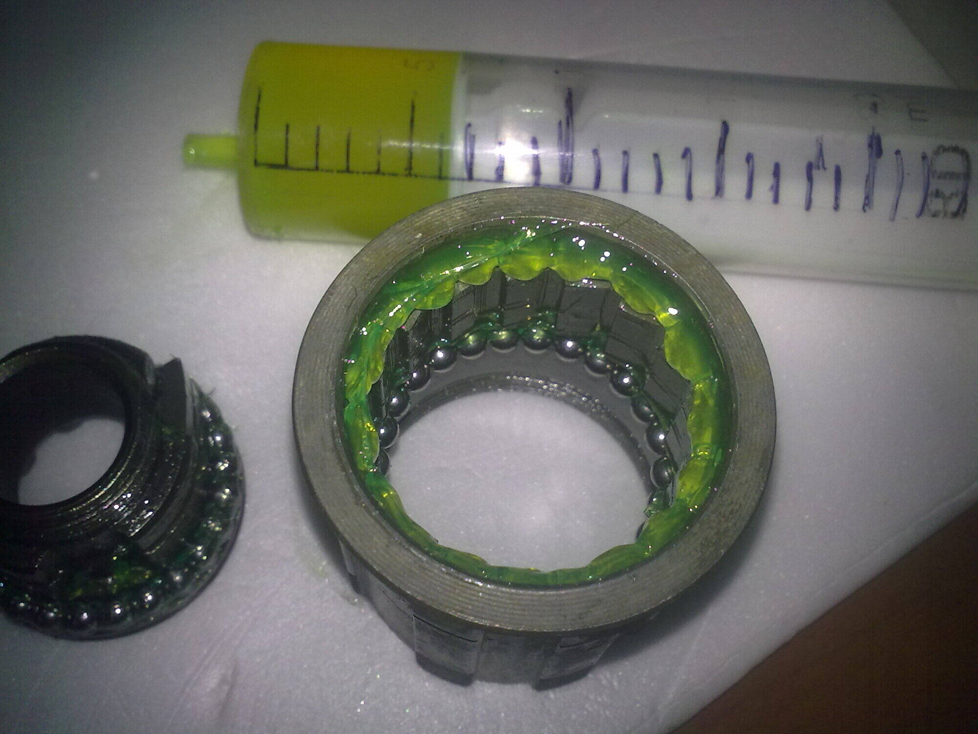Я відкатав 12 років на радянських п"ятіріках , і завжди новий перебирав так як я описав . Ні з одним проблем не виникало , а з заводською змазкою - часто . На кульки змазки давалося рівно стільки , щоб вони прилипали до доріжки .