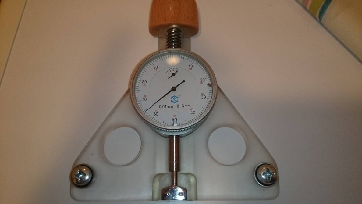 Так вот, что я хочу сказать. В моём понимании, ровное колесо, собранное без тензометра, на спицах DT SWISS Champion имело боковое биение 0.1мм и радиальное (яйцо) 0.15мм. Равномерность натяжения спиц контролировал усилием на ключе и натяжением в месте перекрещивания. И вот наступает момент истины, я иду за тензометром.