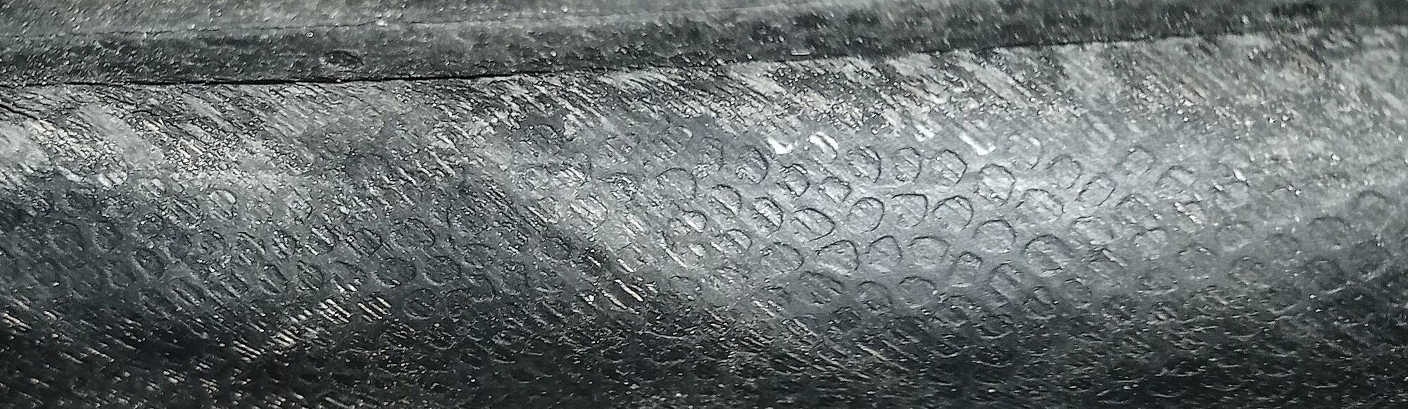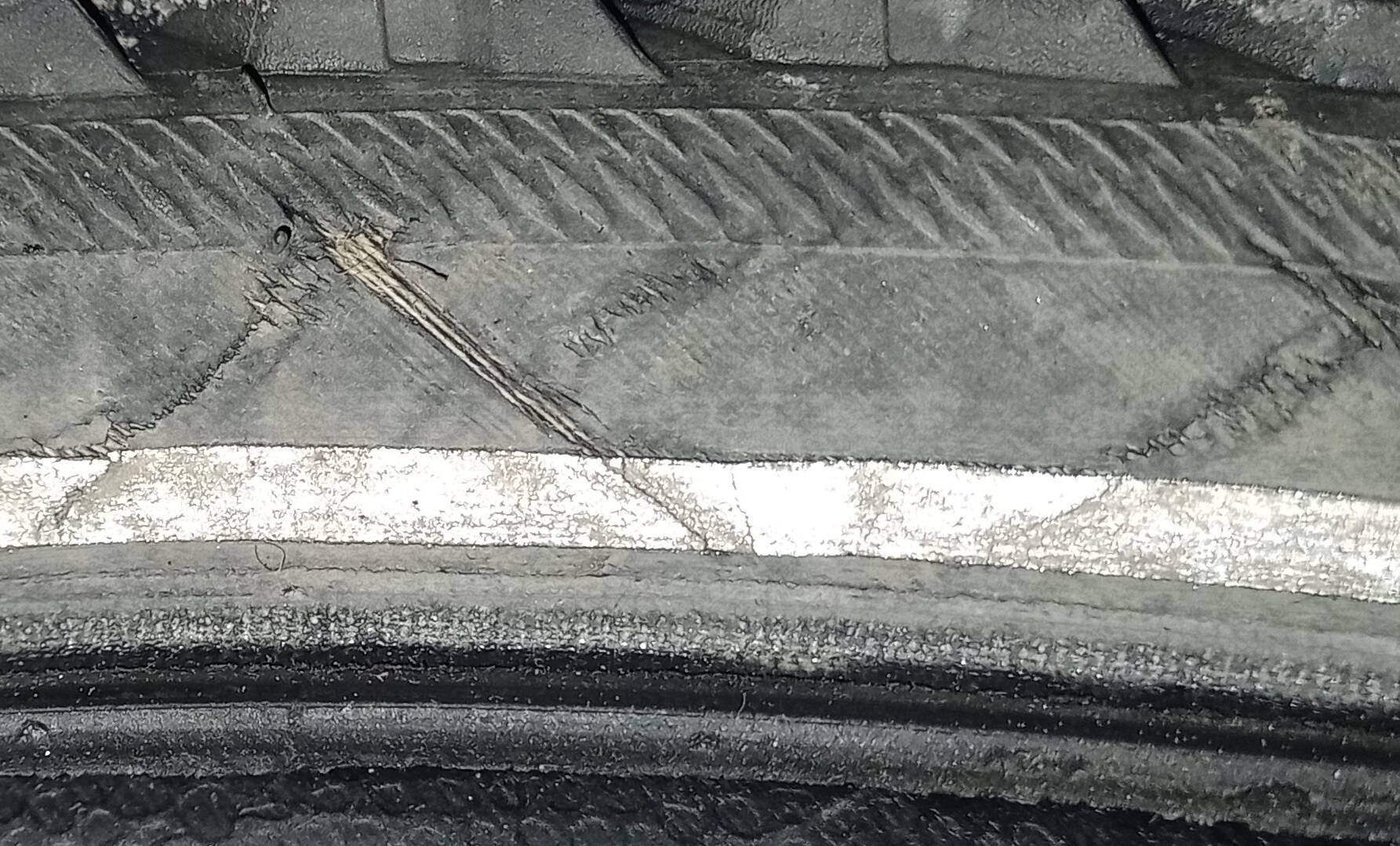 Покрышка расслаивается вдоль борта диска и режет свой борт нейлоновыми нитями крест-накрест.