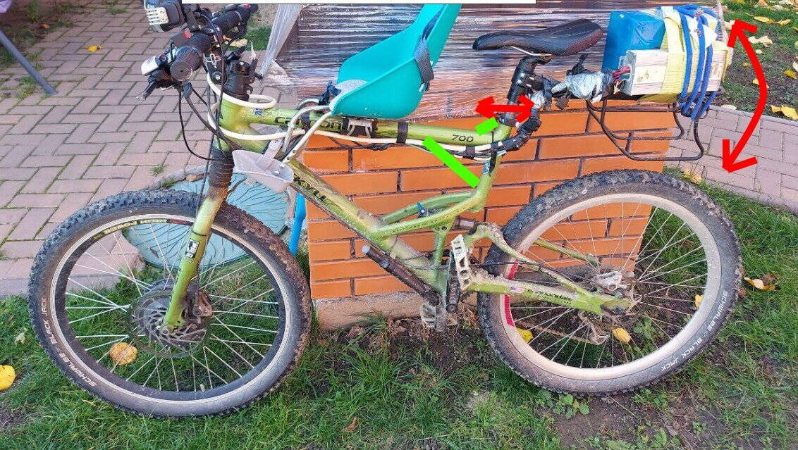 рама - всё. Видимо, сложные условия эксплуатации. Моё худое тельце 110 кг + ребёнок 21 кг в детском кресле + консольный багажник с батареей 4.5 кг. Мотор мощный, врывается в такие горы, в которые я бы без мотора не полез бы. Ребёнок часто просит шоб я проехал через глубокую грязь или по краю озера по воде. Велосипед по сути полноприводный (спереди мотор, сзади я сам), поэтому часто выполняю капризы ребёнка.