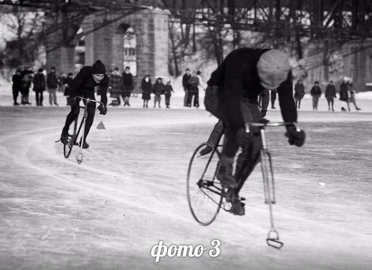 ice cycling on the Milwaukee River at a winter festival, in 1917