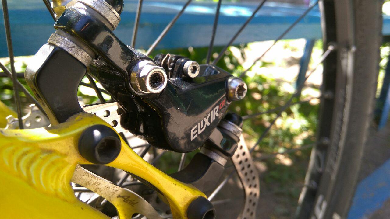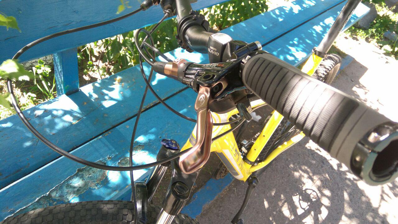 Единственное НО: ход ручки довольно большой. Но подозреваю что все из-за того, что я прокачивал тормоза с полностью раздвинутыми поршнями (задвинул их наравне с поверхностью внутренней части калипера и вставил деревянную проставку чтобы не высовывались). Но меня это слабо волнует, зато расстояние между колодками большое и ничего не чиркает и не попадает между ротором и колодками.