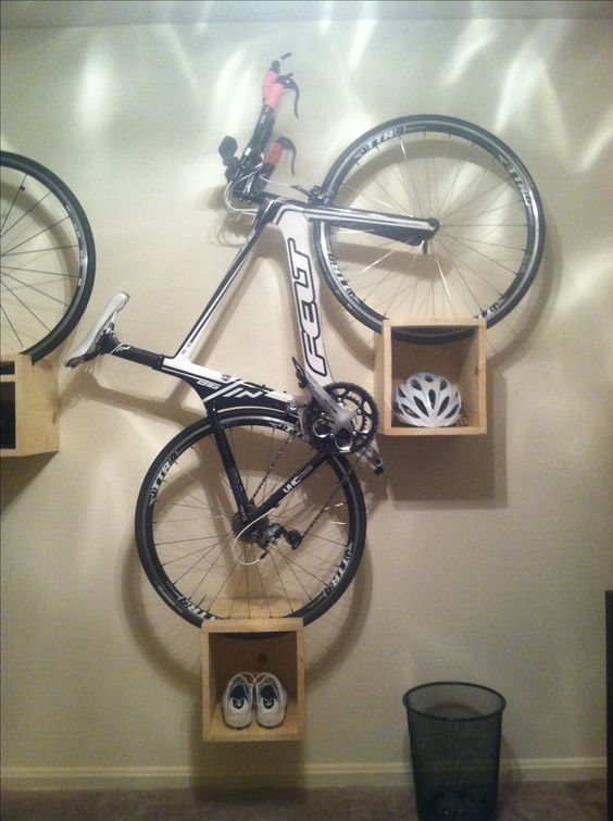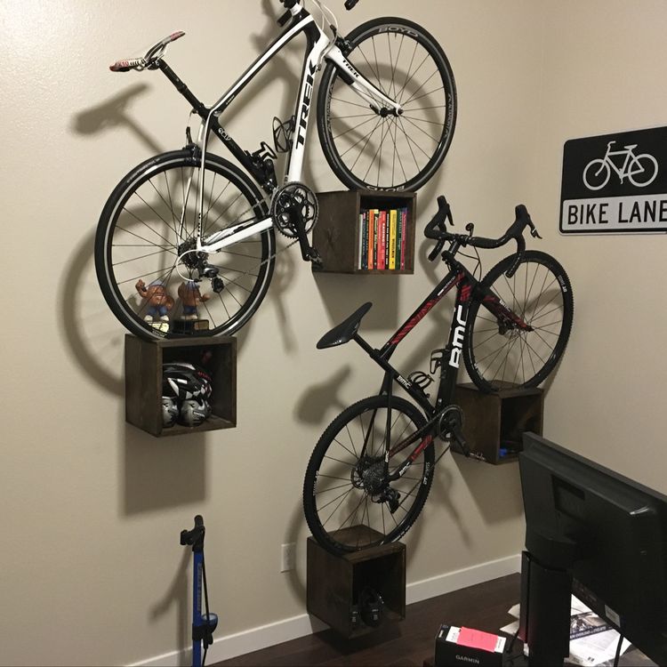 У меня например цель стояла уместить сначала два велосипеда, что-бы они не коцались один об другой, потом третий велосипед повесил рядом. От своих кронштейнов деревянных я получил то, что хотел: быстро снять/повесить велосипед. Все четыре велосипеда вешаются на любой кронш (их два), по совместительству забрасываю на них всякую мелочь велосипедную, либо когда разобранный велосипед, могу туда положить багажник, вилку и прочее, что-бы не мешалось под ногами.