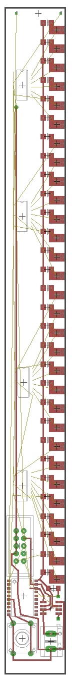 Я понимаю что хочется совершенства, но с точки зрения инженерной мысли, "Лучшее враг Хорошего" , хотя плату я уже переделал, и светодиоды идут по центру платы, и разводка дорожек попроще, переходных точек осталось 26 вместо 60, а сделать прозрачную трубочку, практически в домашних условиях не представляется возможным, как вы себе представляете 30 светодиодов, к которым идет минимум 31 провод, это не говоря уже о 60 - которые стоят на плате, Хотя для продажи можно сделать упрощенный вариант на 30 светодиодов, и минимальными возможностями программирования платы.